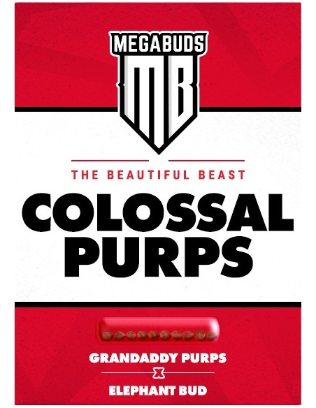 Qui a dit que Big ne pouvait pas être beau ? Pas nous ! Nous aimons nos filles fortes, corpulentes et être un vrai régal pour les yeux. Colossal Purps vous donne exactement ce que votre cœur désire. Ses feuilles sont d'un pourpre pâle et les bourgeons massifs que l'on peut attendre de la génétique de Mega Buds, en plus d'une force suffisante pour faire pleurer un homme adulte.